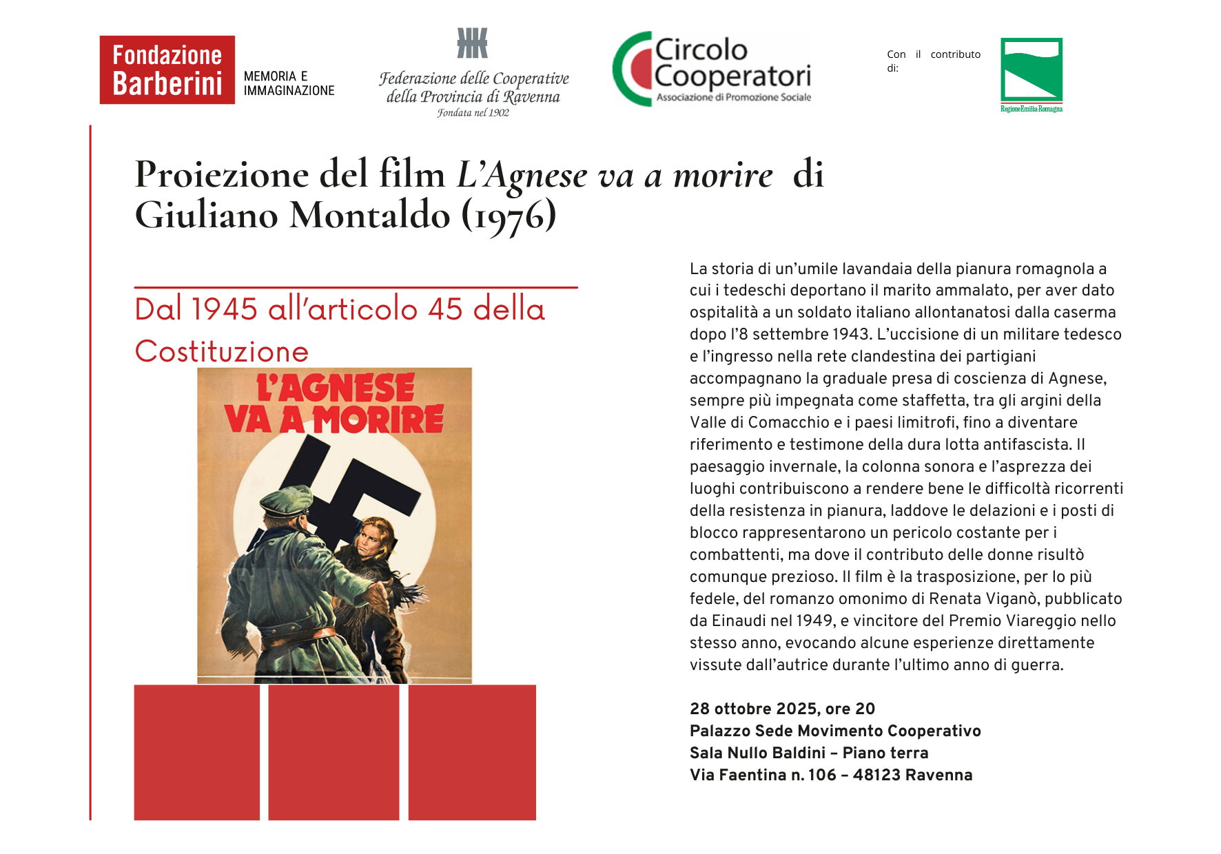 Prosegue a Ravenna il ciclo di iniziative “Dal 1945 all’articolo 45 della Costituzione”, promosso da Fondazione Ivano Barberini, Federazione delle Cooperative della Provincia di Ravenna e Circolo dei Cooperatori APS, con il contributo della Regione Emilia-Romagna.